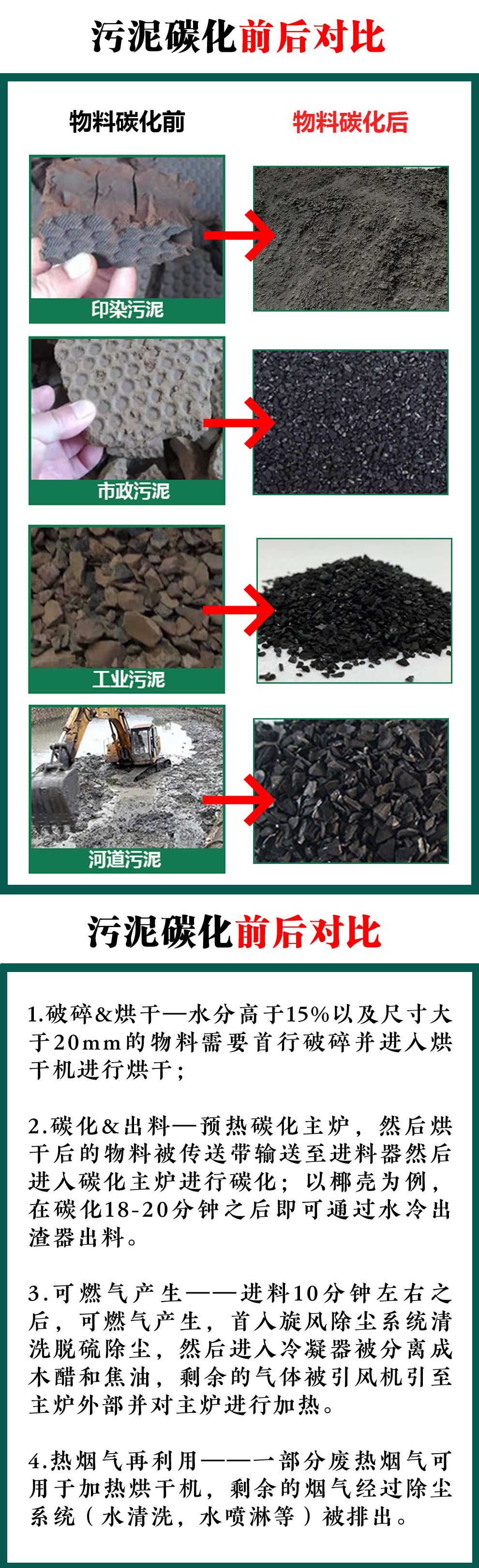 污泥連續(xù)式炭化爐可以用來處理污水廠污泥、市政污泥、河道污泥,工業(yè)污泥等多種類型的污泥,在污泥中含有有機(jī)質(zhì)的情況下,都可以通過炭化熱解的方式進(jìn)行資源化處理和利用。···